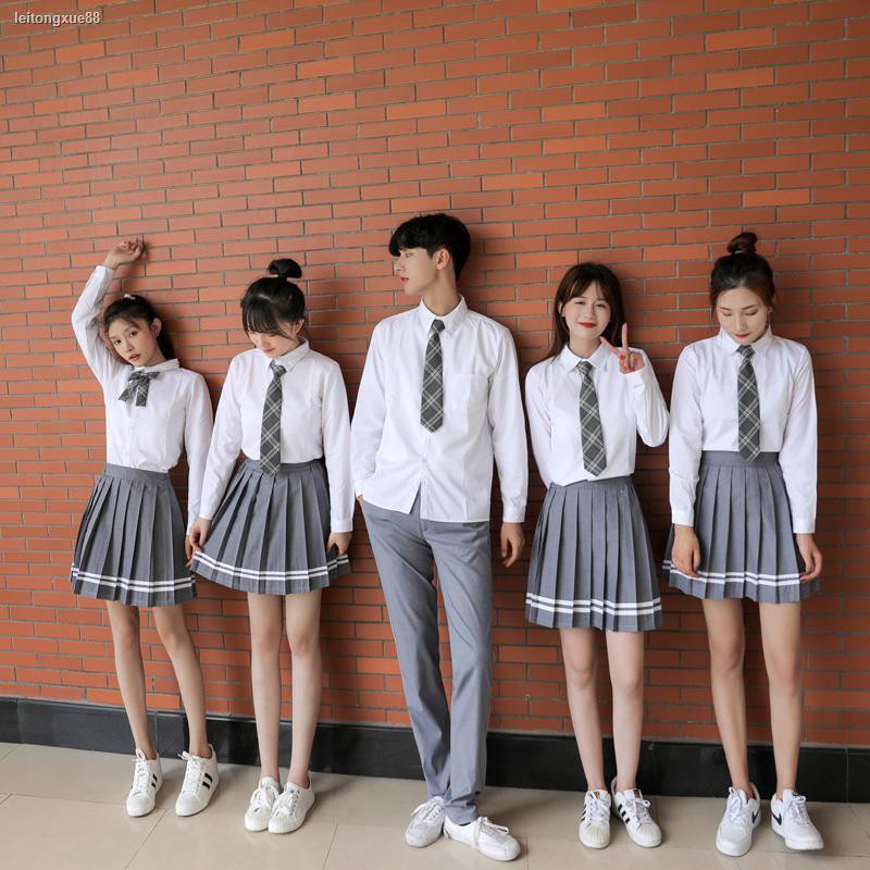 中學生校服套裝秋季學院風韓國jk制服女學生百褶裙高中班服男灰色